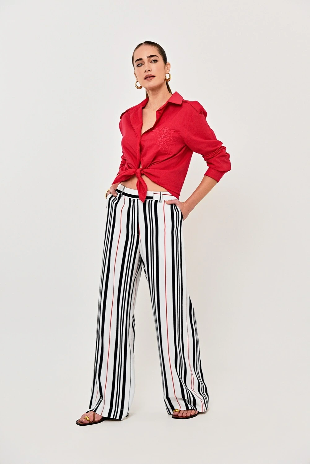 A camisa Mallorca é feita em tricoline, disponível na cor vermelho. Possui modelagem reta, mangas longas, vista de botões, bolso frontal com bordado aplicado e acabamento simples. Detalhes em martingale aplicados nos ombros da peça.