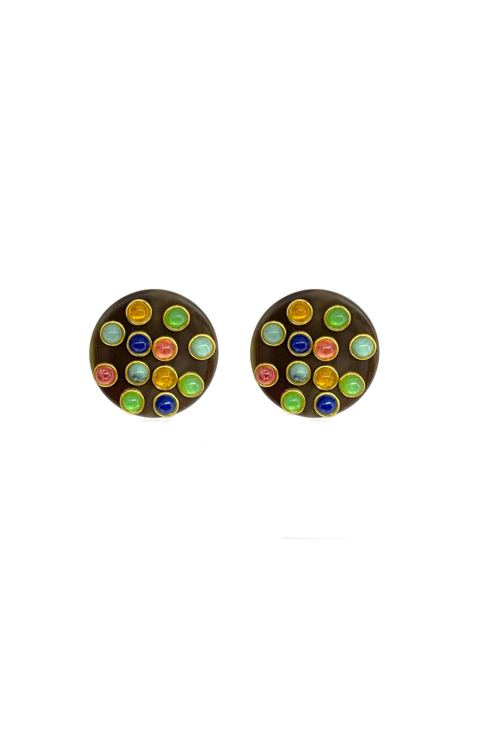 Esse brinco é pura ousadia e estilo! Com base redonda em tom marrom, ele é decorado com aplicações de pedras em diversas cores vibrantes, cada uma envolta por delicados detalhes dourados que realçam ainda mais a composição. Uma peça que mistura modernidade e alegria, ideal para quem gosta de acessórios que não passam despercebidos. Pode ser usado como ponto de cor em produções neutras ou combinado com outras peças coloridas para um look cheio de personalidade.