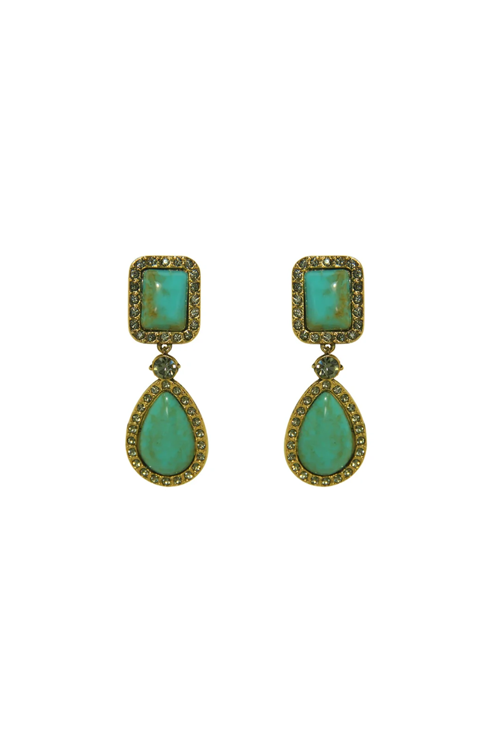 Brinco em resina com cristais e banho dourado. Fechamento em pressão