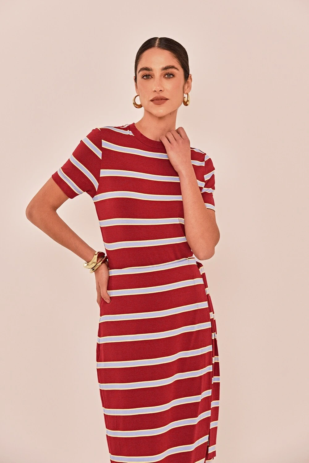 Use a camiseta Queenstown com a saia Radiante em mesmo tecido e estampa, formando um matching set perfeito para dias mais quentes. Parte da coleção Marrakech, que traduz a intensidade, a sofisticação e a beleza singular do cenário marroquino.