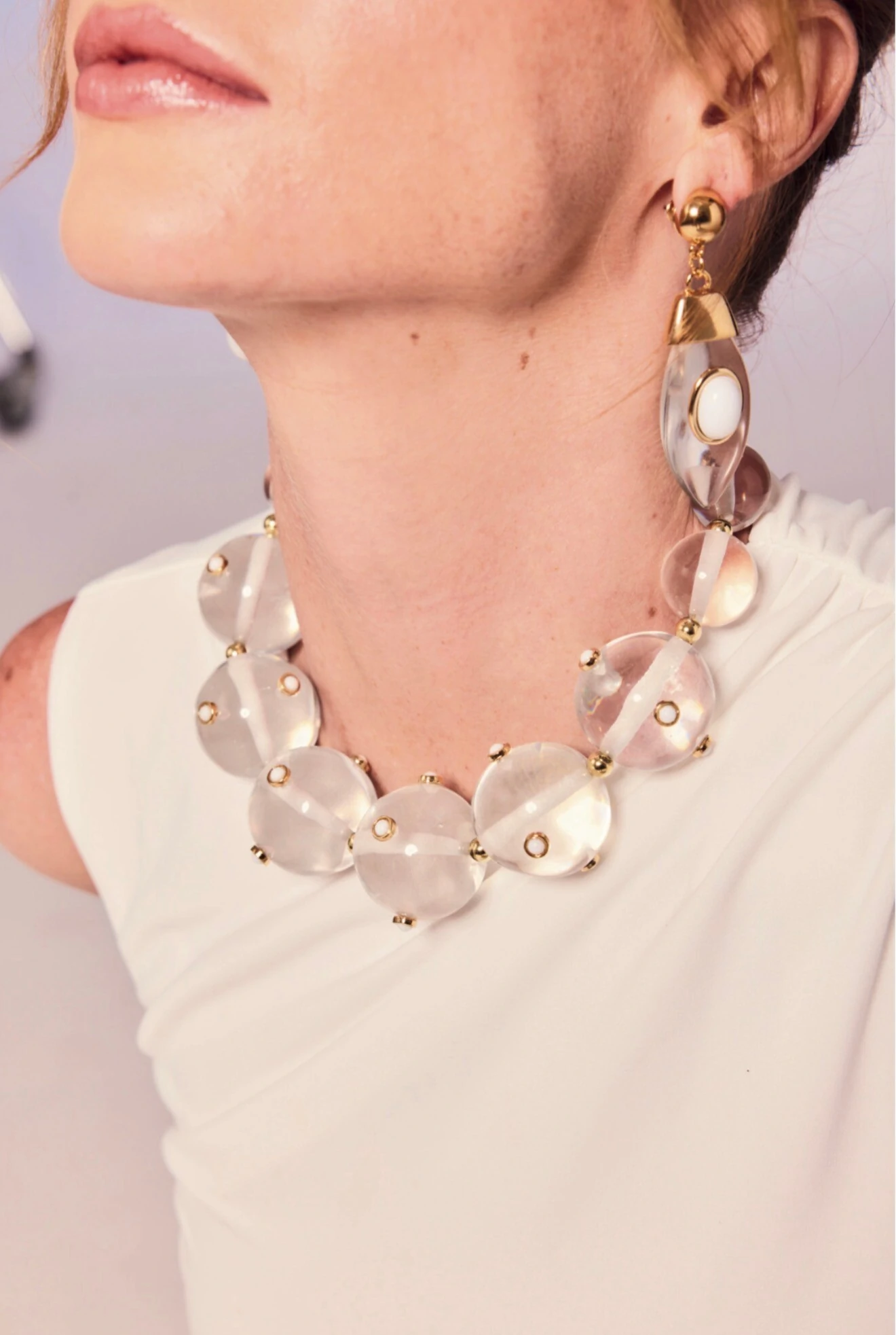 Colar curto fabricado em resina. Fechamento em corrente com fecho lagosta com banho de ouro
