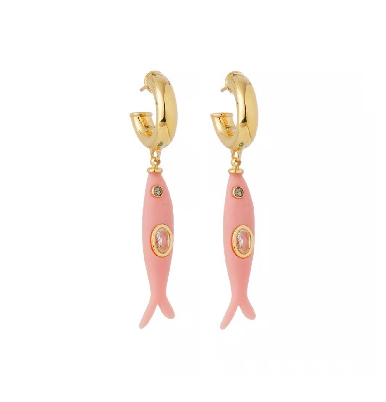 Clássico e moderno na mesma medida, o Brinco Argola de Pino Sardines traz o toque de irreverência e sofisticação característico da coleção WILD SARDINES: o mar está pra peixe. Produzido em metal com banho dourado, apresenta sardinha de resina com olhos em pedra de zircônia e aplicação de strass, garantindo brilho delicado e elegante.