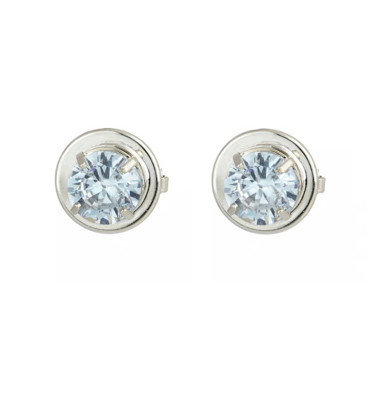 Dimensões: Zircônia de 1,2cm de diâmetro cravada em uma capa de botão de metal com banho dourado com 1,8cm de diâmetro e 0,4cm de altura