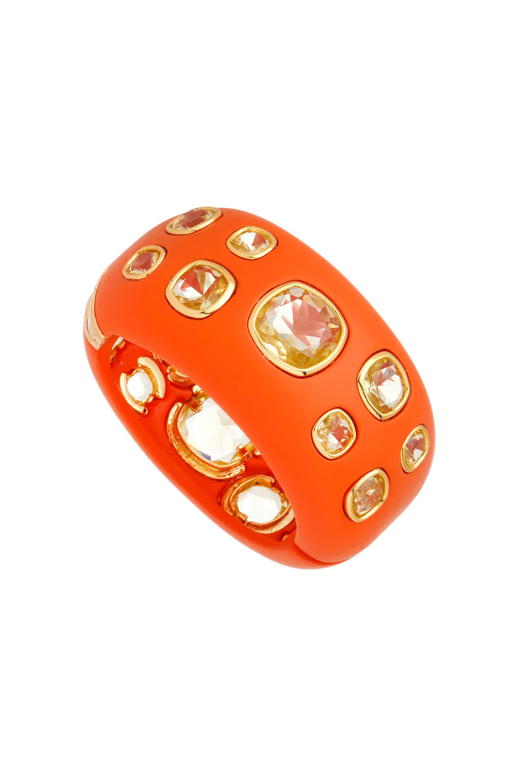 Pulseira fabricada em resina desenvolvida exclusivamente pela designer. Possui cristais lapidados nos dois lados com acabamento em em metal com banho de ouro