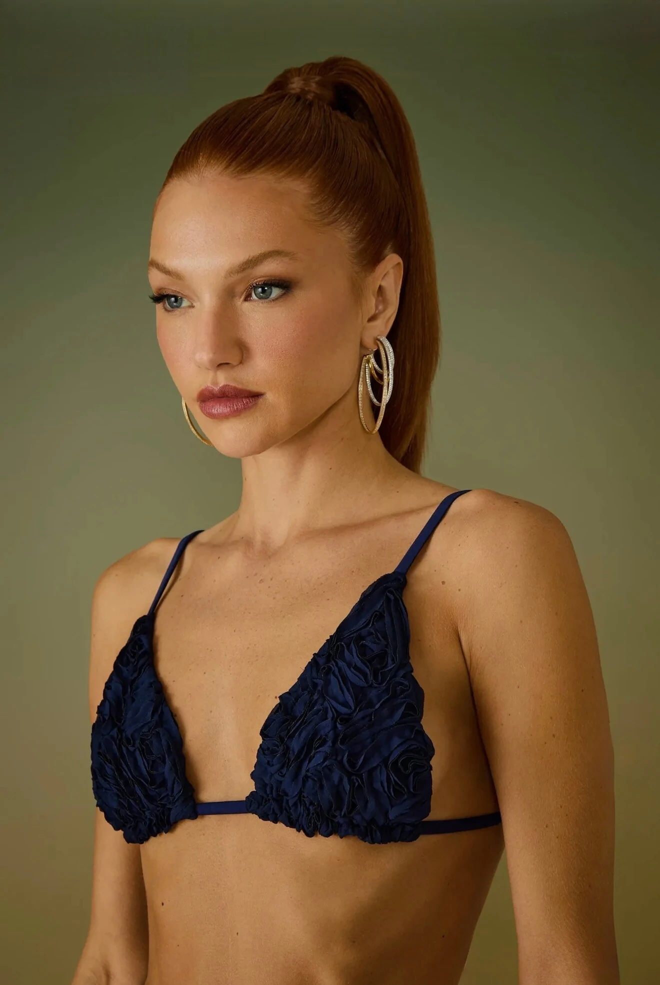 Cria um visual de alta costura e muito luxo, transformando o biquíni em uma peça de impacto, ideal para resorts.