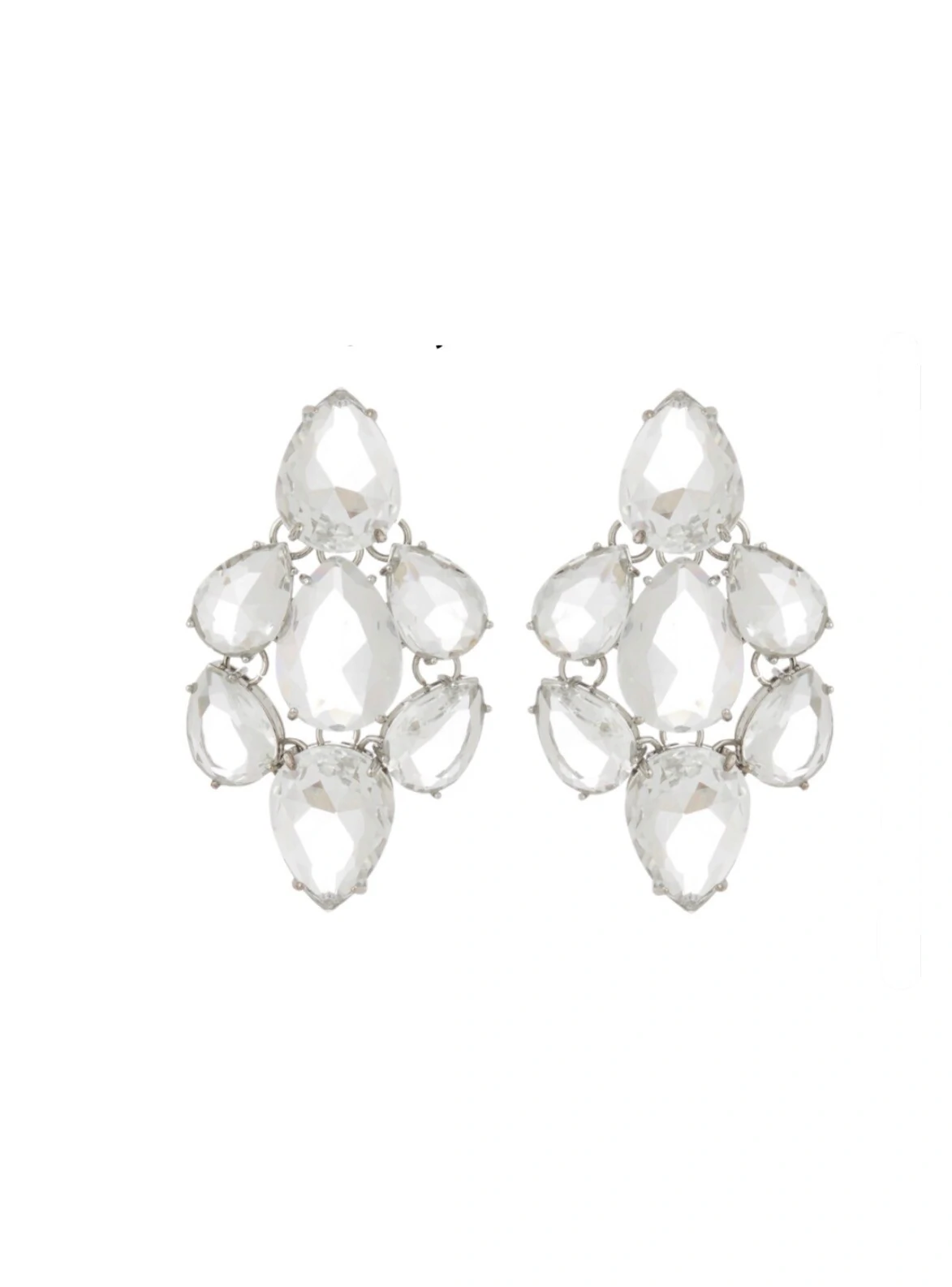 MAXI BRINCO GOTA PEDRA ACRÍLICO LAPIDADO COR CRISTAL.