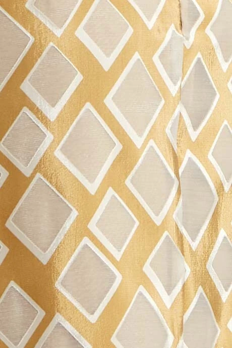 O devorê mistura transparência e textura, valorizando a estampa geométrica e deixando o look moderno e elegante.