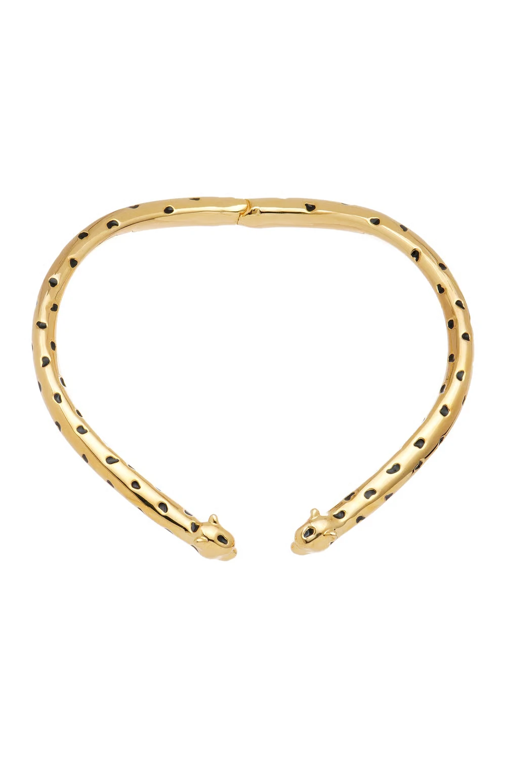O design é valorizado pelas rosetas (pintas) esmaltadas em preto, que criam o efeito Leopard de forma delicada e contemporânea. Para maior praticidade e conforto, o colar conta com terminal de mola em metal, garantindo melhor ajuste ao pescoço.