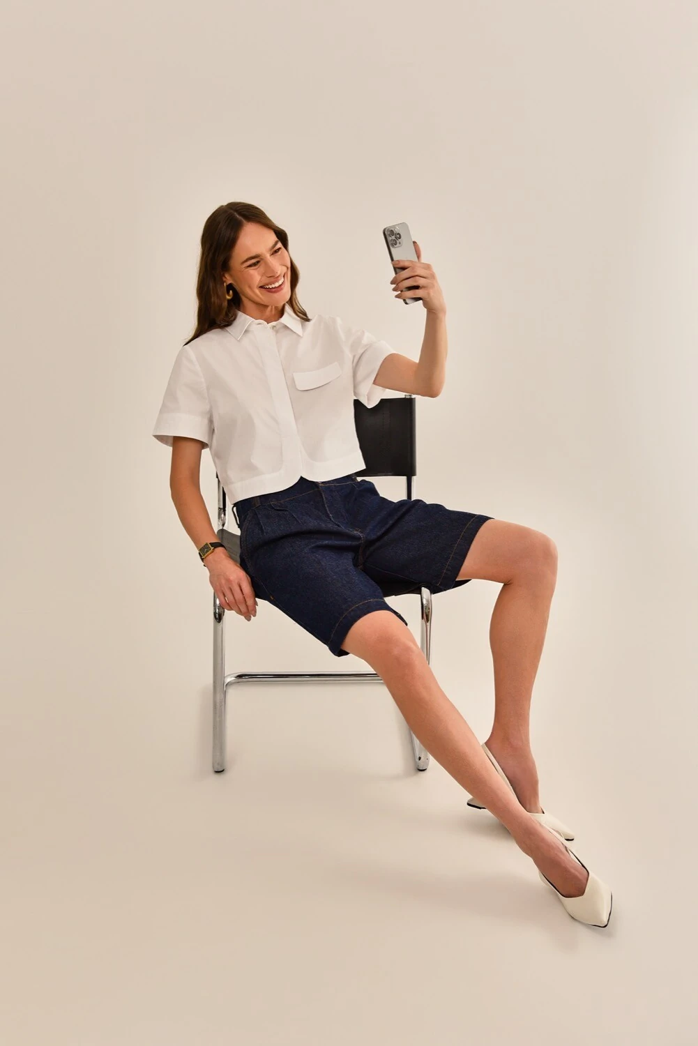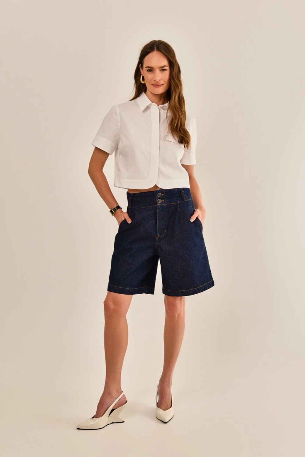Use a bermuda Velvet com uma infinidade de composições, resultando em um look clássico e atemporal. Parte da coleção Blue Edition, que celebra a atemporalidade do denim em uma estética moderna e sofisticada, resultando na elegância em sua forma mais versátil.