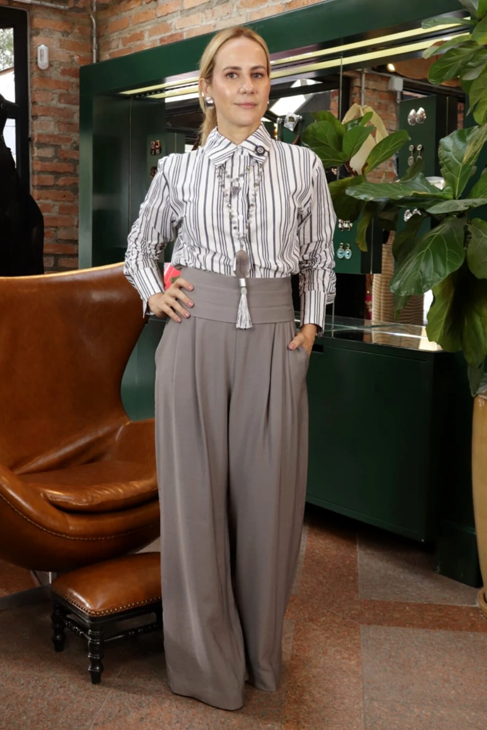 Calça alfaiataria cupro com pala na cintura e modelagem impecável