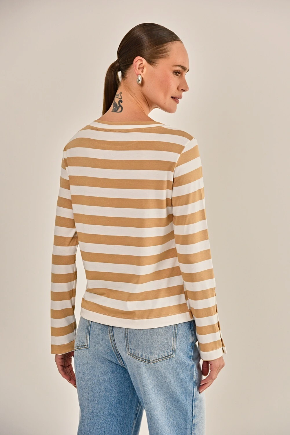 Invista na camiseta Anahi, peça à prova de erros, perfeita para o dia a dia. Parte da coleção Classic Beauty, inspirada na beleza clássica e na elegância que atravessa o tempo.