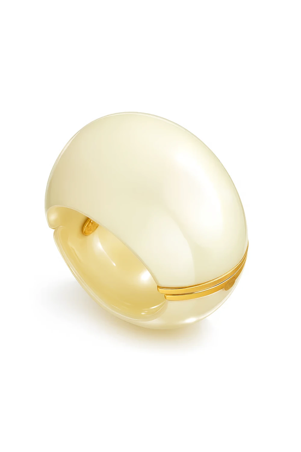 A peça possui 7 cm de diâmetro e encaixe confortável no pulso. As resinas são cuidadosamente trabalhadas, garantindo textura refinada. Detalhes em metal valorizam ainda mais o design bold e sofisticado.
