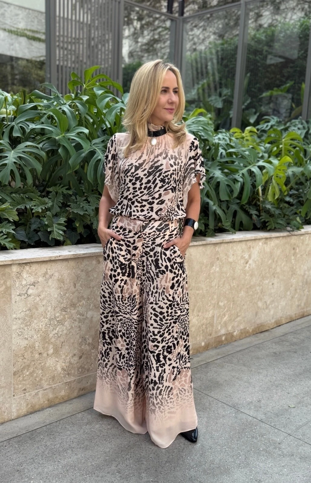 A blusa laço em estampa onça traz personalidade e feminilidade para o visual. Com babados nas mangas que adicionam movimento e charme, a peça se destaca pela versatilidade, permitindo inúmeras formas de amarração. Perfeita para composições marcantes, do elegante ao fashionista.