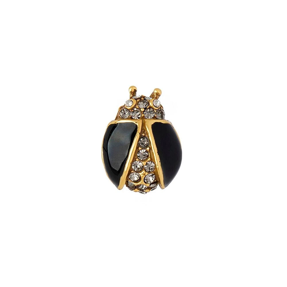 Botton em metal no banho ouro vintage, com joaninha esmaltada na cor preto e cravejada com 21 strass black diamond colados manualmente.
